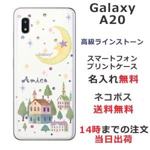 - Galaxy A20 ケース SC-02M SCV46 ギャラクシーA20 カバー ラインストーン かわいい らふら 名入れ 月 街