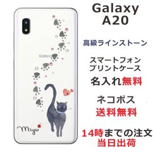 - Galaxy A20 ケース SC-02M SCV46 ギャラクシーA20 カバー ラインストーン かわいい らふら 名入れ 黒猫