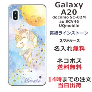 - Galaxy A20 ケース SC-02M SCV46 ギャラクシーA20 カバー ラインストーン かわいい らふら 名入れ ユニコーン
