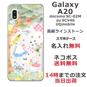 - Galaxy A20 ケース SC-02M SCV46 ギャラクシーA20 カバー ラインストーン かわいい らふら 名入れ アリス