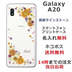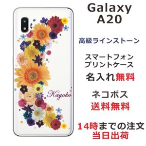 Galaxy A20 ケース SC-02M SCV46 ギャラクシーA20 カバー ラインストーン かわいい フラワー 花柄 らふら 名入れ 押し花風 ナチュラルフラワー