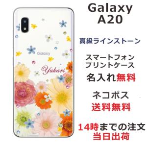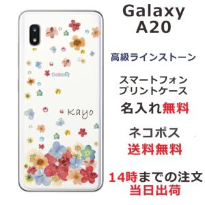 Galaxy A20 ケース SC-02M SCV46 ギャラクシーA20 カバー ラインストーン かわいい フラワー 花柄 らふら 名入れ 押し花風 春花