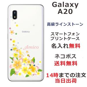 Galaxy A20 ケース SC-02M SCV46 ギャラクシーA20 カバー ラインストーン かわいい フラワー 花柄 らふら 名入れ 押し花風 プルメリア