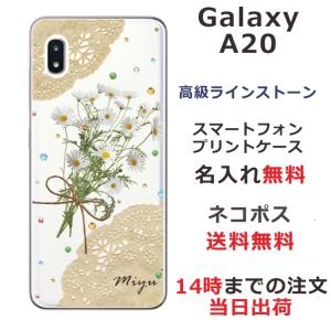 Galaxy A20 ケース SC-02M SCV46 ギャラクシーA20 カバー ラインストーン かわいい フラワー 花柄 らふら 名入れ 押し花風 マーガレットレース