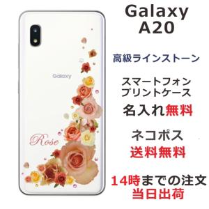 Galaxy A20 ケース SC-02M SCV46 ギャラクシーA20 カバー ラインストーン かわいい フラワー 花柄 らふら 名入れ 押し花風 バラ