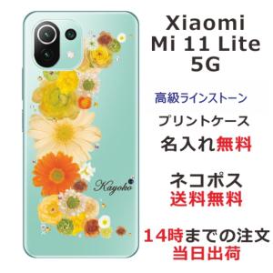 - Xiaomi Mi 11 Lite 5G ケース シャオミ M11ライト 5G カバー ラインストーン かわいい フラワー 花柄 らふら 名入れ 押し花風 春花