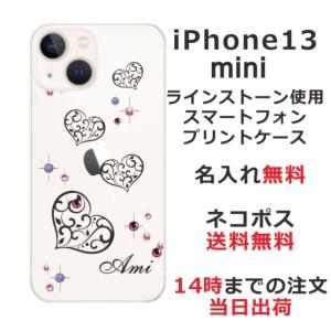 - iPhone13 mini アイフォン13ミニ らふら 名入れ スマホケース ラインストーン グラデハート