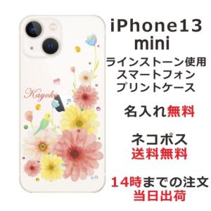 - iPhone13 mini アイフォン13ミニ らふら 名入れ スマホケース ラインストーン ふんわりフラワー インコ