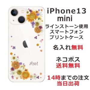 - iPhone13 mini アイフォン13ミニ らふら 名入れ スマホケース ラインストーン スマホカバー 押し花風 アンティークフラワー