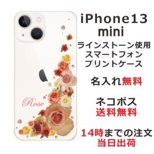- iPhone13 mini アイフォン13ミニ らふら 名入れ スマホケース ラインストーン スマホカバー 押し花風 バラ