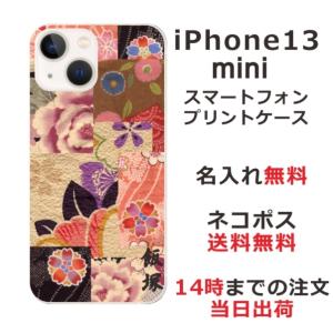 - iPhone13 mini アイフォン13ミニ らふら 名入れ スマホケース 和柄 和花パッチワーク