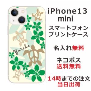 - iPhone13 mini アイフォン13ミニ らふら 名入れ スマホケース ハワイアン グリーン ホヌ