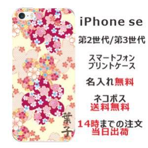 - iPhone SE 第3世代 らふら 名入れ スマホケース 和柄 花 サクラ