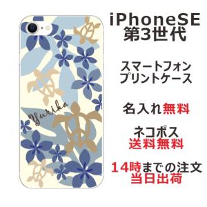 - iPhone SE 第3世代 らふら 名入れ スマホケース ハワイアン ネイビー ホヌ