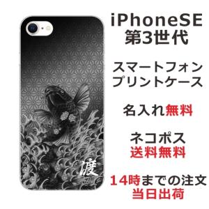 - iPhone SE 第3世代 らふら 名入れ スマホケース 和柄 昇り鯉黒