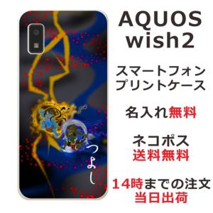 - AQUOS Wish2 アクオスウィッシュ2 SH-51C SH-M20 らふら 名入れ スマホケース 和柄 風神雷神