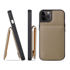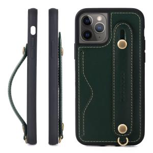 - HANATORA,IPhone 11Pro グリップケース レザー 本革 ストラップ付属 イタリア製牛革 ヌメ革 片手操作 カード収納 スタ