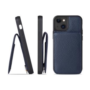- HANATORA iPhone13 mini ケース 本革 シュリンクカーフレザー カードポケット フラップ スタンド機能 ショルダーストラ