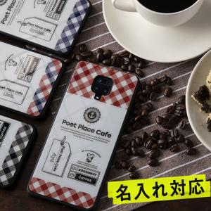 Galaxy A7 ケース カバー スマホケース ガラス かわいい おしゃれ カフェ チェック柄 チェック cafe 名入れ チェックラベル ガラスケース 40代 50代