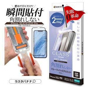 - iPhone15 Pro ガラスフィルム 全面保護 高光沢 高透明 クリア 角割れしない 0.25mm 10H ソフトフレーム ガイド枠付き アイフォン SG3954IP361P ラスタバナナ