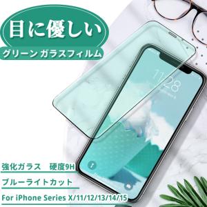 - ガラスフィルム ブルーライトカット iPhone シリーズ 17 16 15 14 13 12 11 X XR XS mini plus pro max グリーン 目を守る 液晶保護 貼り付け簡単 1枚入