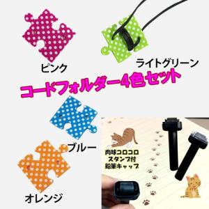 コードフォルダー4色セット 猫ちゃん 肉球のコロコロスタンプ付鉛筆キャップ付