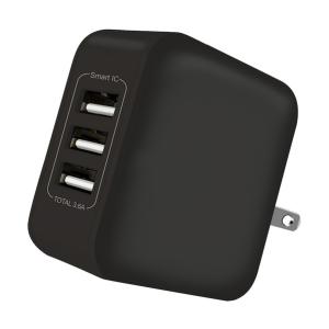 - エアージェイ 3ポート3.6A AC充電器 BK AKJ-36AD3 BK