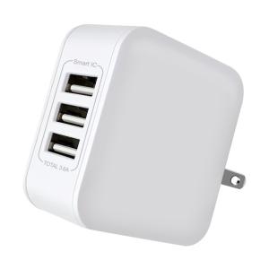 - エアージェイ 3ポート3.6A AC充電器 WH AKJ-36AD3 WH