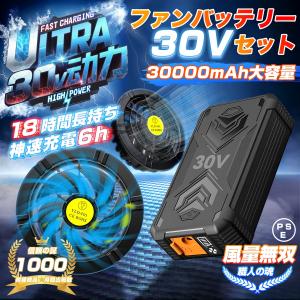 - ファンバッテリーセット 空調作業服 PSEマーク認証済 30V 超強風(ブラック, 30V ファンバッテリーセット 30000mAh)