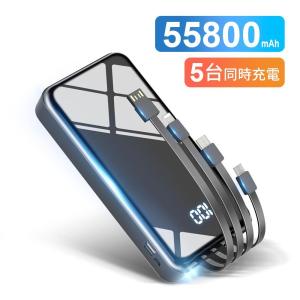 - モバイルバッテリー 55800mAh大容量 3.0A急速充電 ケーブル内蔵 5台同時に充電できる 4本ケーブル内蔵 残量表示 懐中電灯 充電器 スタンド付き PSE認証済