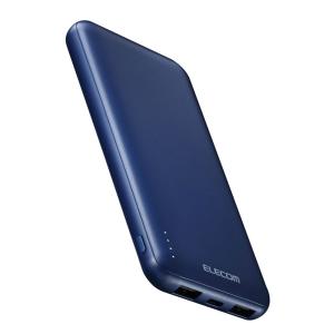 - エレコム モバイルバッテリー 10000mAh 大容量 薄型 PSE適合 ケーブル付属(ブルー) DE-C66-10000BU 返品種別A