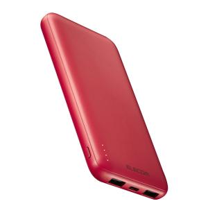 - エレコム モバイルバッテリー 10000mAh 大容量 薄型 PSE適合 ケーブル付属(レッド) DE-C66-10000RD 返品種別A