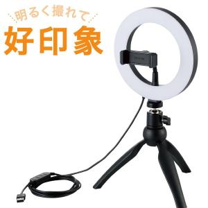 - エレコム DE-L02BK LEDリングライト ミニ三脚スタンド付き 16cm LED リング ライト 3色モード 10段階調光 USB給電