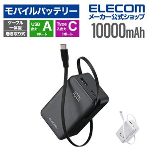 - モバイルバッテリー 大容量 10000mAh 30W リチウムイオン電池 TypeC USBA 充電ケーブル付属 ブラック DE-C69L-10000BK