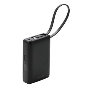 - エレコム ケーブル一体型モバイルバッテリー 10000mAh(30W・ブラック) DE-C71L-10000BK 返品種別A
