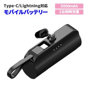 - モバイルバッテリー ホワイト 5000mAh コンパクト 超軽量 Lightning/Type-C 5V/2A出力 2台同時充電 90日保証[M便 1/4]