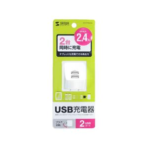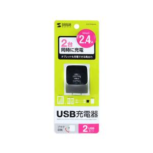 - 【お取り寄せ】サンワサプライ USB充電器(2ポート・合計2.4A・ブラック)