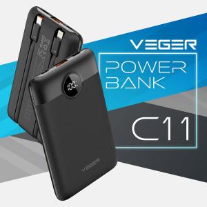 - 日本正規販売代理店 VEGER Power Bank C11 モバイルバッテリー 10000mAh 大容量 2ケーブル内蔵モデル