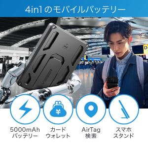 - VEGER MagSafe対応 Power Bank X5 5000mAh モバイルバッテリー AirTag内蔵 ウォレットカード 収納ホルダー付 スマホスタンド iphone16/15 充電チャージャー