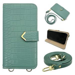 Xperia5 SO-01M SOV41 エクスペリア5 スマホショルダー ケース (ブルー) 斜めがけ ストラップ付き クロコ柄 くすみカラー