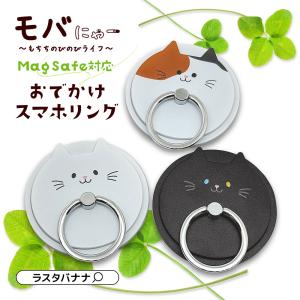 - モバにゃー ストラップホルダー おでかけストラップシート 猫 ネコ ねこホルダー ホルダーシート スマホショルダー 挟むだけ カラビナリングタイプ ラスタバナナ