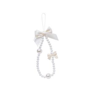 - HAMEE PHONEAR リボン&パールDUOストラップ ホワイト 661-056744