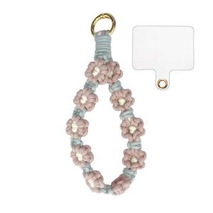 - ハンドストラップ 花編み ピンクxミントグリーン ストラップシート付 サンクレスト iSB-HS08