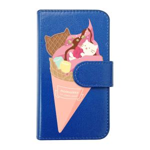 motorola edge 40 モトローラ 手帳型 ケース (ねこアイス / ダークブルー) アイスクリーム ソフトクリーム 猫 ネコ アニマル 動物