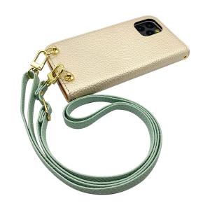 Xiaomi 12T Pro スマホショルダー(手帳シャンパン×ストラップ:アイスグリーン)カバー 手帳 くすみカラー