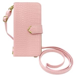 Redmi 12C シャオミ スマホショルダー ケース (ピンク) 斜めがけ ストラップ付き クロコ柄 スタンド機能 くすみカラー