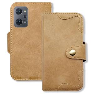 OPPO Reno 7A OPPO Reno9 A オッポ 手帳型 ケース アンティーク調 (ベージュ)PUレザー 合皮 カード収納 カバー