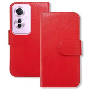 OPPO Reno11 A スマホケース(レッド)手帳型 PUレザー 無地 ケース 横開き カード収納 カバー