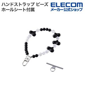 - エレコム スマホ ハンドストラップ ビーズ ストラップホールシート付属 ハート ブラック P-STHBEHBK