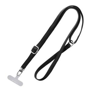 - ショルダーストラップ 多機能 ブルー 平紐 レザー ステンレスシート 2WAY 肩掛け 首掛け